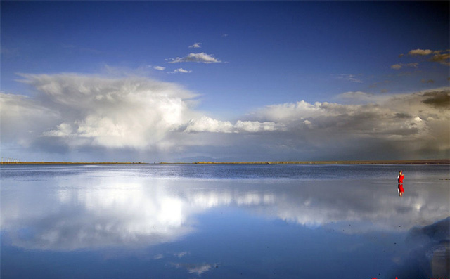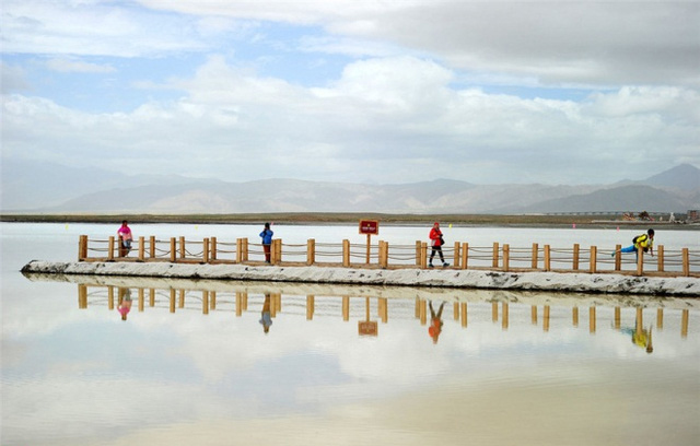 Hồ nước mặn Chaka mang vẻ đẹp kỳ lạ với đáy hồ màu tuyết trắng và làn nước trong xanh. Nơi này còn được gọi với cái tên “Tấm gương của bầu trời”. Đây là một trong những điểm du lịch “nhất định phải tới” ở Thanh Hải, Trung Quốc.