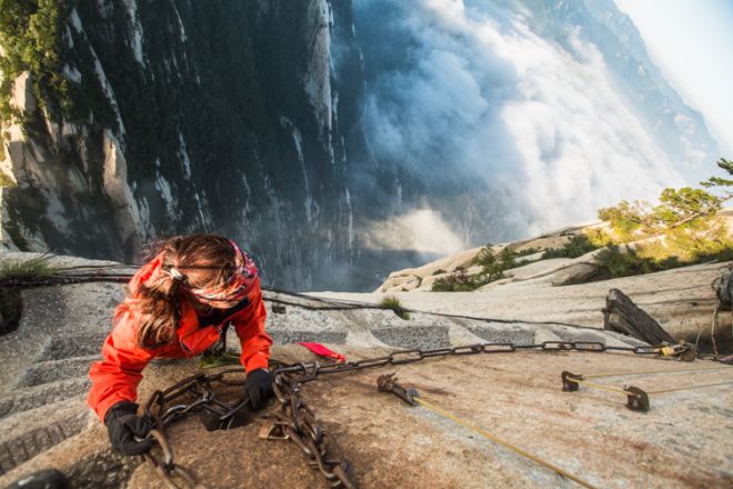 Tuy nhiên, điều khiến Hoa Sơn trở nên nổi tiếng với du khách quốc tế là con đường men theo vách đá được mệnh danh là “tuyến đường bộ nguy hiểm nhất thế giới”.