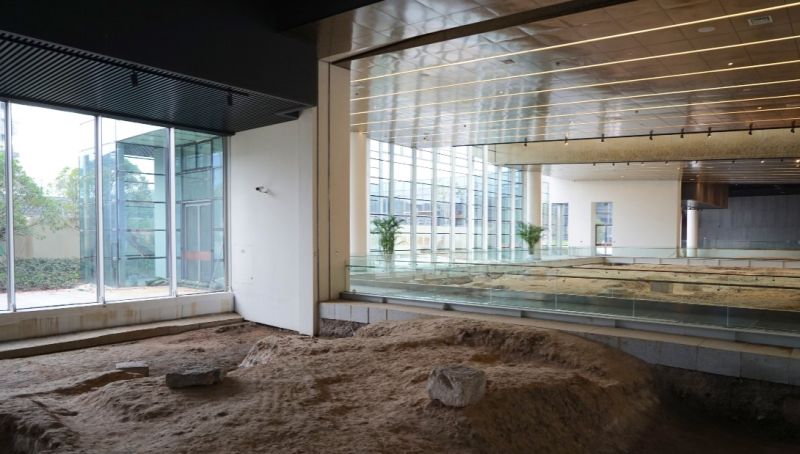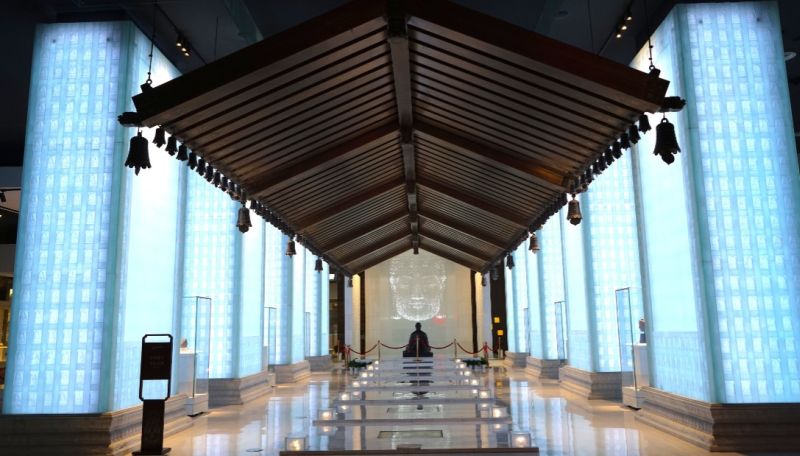 Trong bảo tàng trưng bày các di tích lịch sử từ thế kỷ thứ sáu và tàn tích đất màu đứng cạnh các thiết kế nguy nga hiện đại bao gồm: một đầu Phật nổi 3D khổng lồ được tạo nên từ các điểm nhỏ ánh sáng.