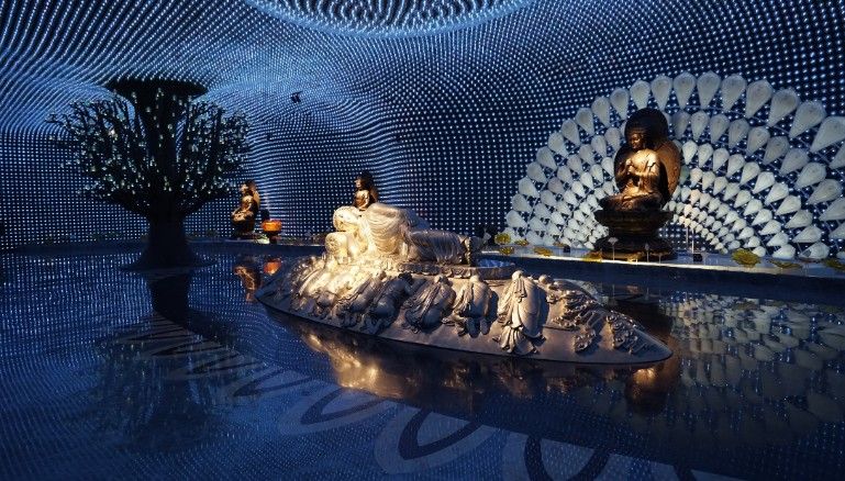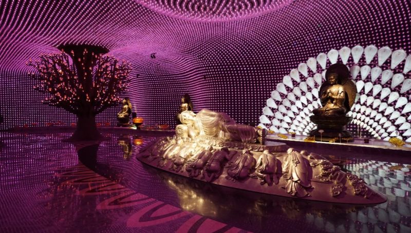 Một căn phòng được bọc trong những bức tường gương với hàng ngàn bóng đèn luôn thay đổi màu sắc được cho là đại diện cho Đức Phật về ánh sáng và xá lợi. Xá lợi chính là các di tích thân thể của các bậc thầy tâm linh trong Phật giáo