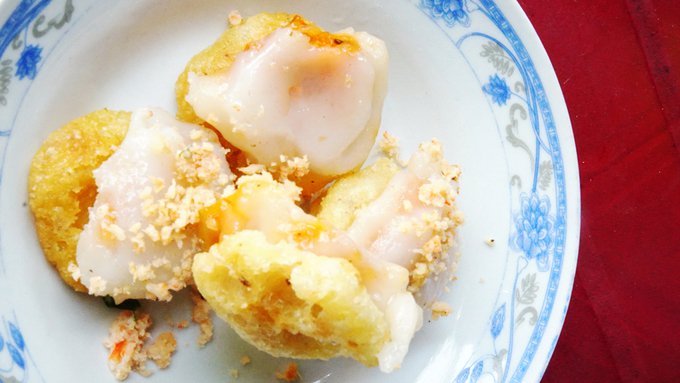 Bánh ram ít: Bánh ít ram có hai màu trắng vàng, điểm xuyết màu xanh của mỡ hành, vàng của tôm cháy. Bạn sẽ cảm thấy thích thú bởi khi ăn, bánh vừa giòn rụm lại dẻo mềm. Giá một phần thường từ 10.000 đồng. Địa chỉ gợi ý: đường Phạm Hồng Thái, O Sớm ở Hải Triều, Dì Sinh ở Lê Thánh Tôn, Ông Đỏ ở Nguyễn Bình Khiêm…