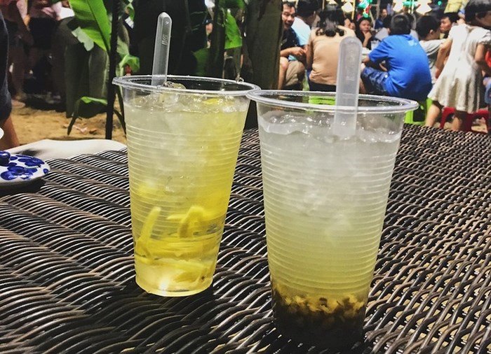 Buổi tối, bạn có thể ra bờ kè hóng gió, thưởng thức ly chè mít hạt đác mát lành chỉ 5.000 đồng. Hạt đác ăn giòn sần sật, béo bùi, có công dụng giải nhiệt tốt vào những ngày hè nóng nực.