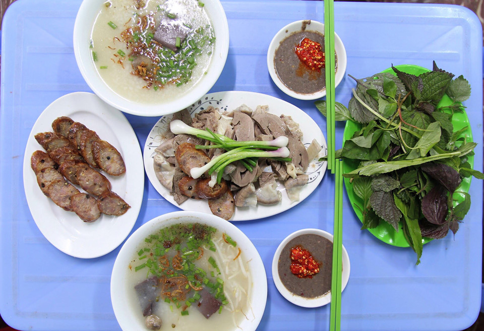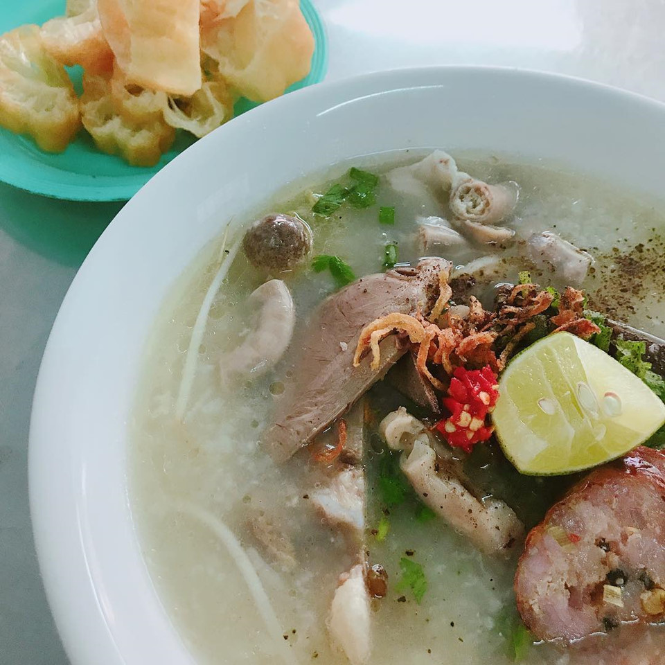 Cháo lòng quán Loan: Có thể gọi món cháo lòng này ở Vũng Tàu là "Bắc - Nam giao hòa". Dồi ăn kèm với cháo là dồi chiên kiểu miền Nam, không phải dồi huyết luộc hay hấp, song nước chấm ăn kèm lại là mắm tôm, đặc sản thường thấy ở đất Bắc. Bạn có thể gọi riêng một tô cháo thập cẩm với đủ dồi, phèo, tim, gan... hoặc một dĩa lòng cùng cháo đi kèm cho nhiều người cùng ăn. Ảnh: @vochongbeo.