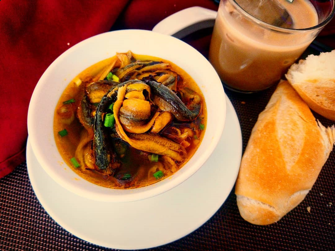 Bạn có thể lựa chọn súp lươn hoặc cháo lươn để thưởng thức. Súp lươn thường ăn kèm với bánh mì hoặc bánh mướt cũng chuẩn vị Nghệ An. Một số địa chỉ nổi tiếng như cháo lươn Bà Ngọ, lươn cay cổng Thành… Ảnh: @daisy_ttn, @onlyou279.