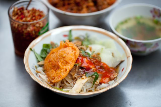 Phở chua: So với phở bò trứ danh Hà thành, phở chua Lạng Sơn cũng không kém phần cầu kỳ. Một bát phở chua truyền thống của xứ Lạng cần đến hơn chục loại nguyên liệu đặc biệt như khoai lang, gan lợn, dạ dày, thịt ba chỉ, xá xíu, bột chao, lạp xưởng… chưa kể các loại rau thơm, dưa chuột, lạc rang… Với nguyên liệu đa dạng như vậy, phở chua hội tụ đầy đủ vị cay, ngọt man mát lại chua dịu thanh thanh.