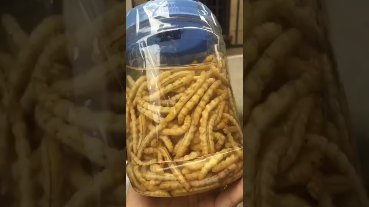 Những con sâu tre (sâu măng) được đem chiên giòn tan cùng lá chanh đang là món ăn khoái khẩu của người Hà Nội.