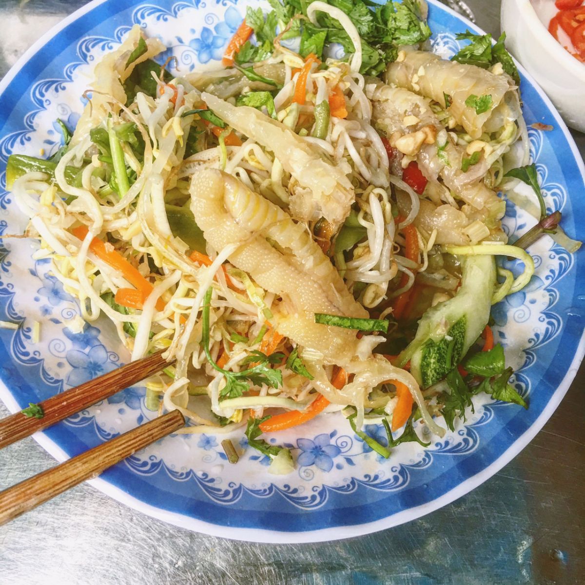 Nộm chân gà rút xương: Nộm chân gà và bún bò giấm vẫn luôn là những món ăn hấp dẫn giới trẻ. Nguyên liệu làm nên món nộm chân gà ngon phải kể đến thịt chân gà được rút xương tỉ mỉ, chín tới giòn giòn, dai sần sật kết hợp với nộm chua cay, ngọt vừa nêm hợp lý.