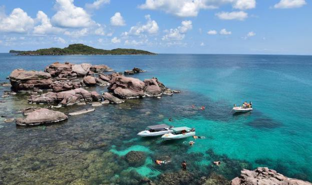 Chỉ mất vài trăm ngàn đồng mỗi người, nhóm khách quốc tế đã có thể tận hưởng tất cả những trải nghiệm “đáng nhớ nhất trong đời” tại chuỗi đảo đẹp sững người quanh Hòn Thơm như Móng Tay, Mây Rút, Dăm Ngang...