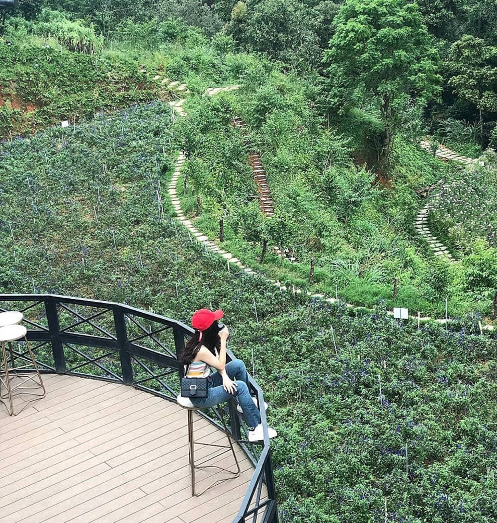 Cafe F Cánh đồng hoa: Là điểm check-in nổi bật, thu hút giới trẻ trong thời gian gần đây, Cafe F Cánh đồng hoa mang đến bạn một không gian thơ mộng, xanh mát mắt. Ngoài khu vực phục vụ trong nhà, quán có đài quan sát bằng kính và một số khu vực ngoài trời như nằm chênh vênh giữa không trung rất ấn tượng, đủ sức cho bạn thoải mái tạo dáng, lên hình "sống ảo" lung linh Facebook, Instagram. Ảnh: @nnxqqq.