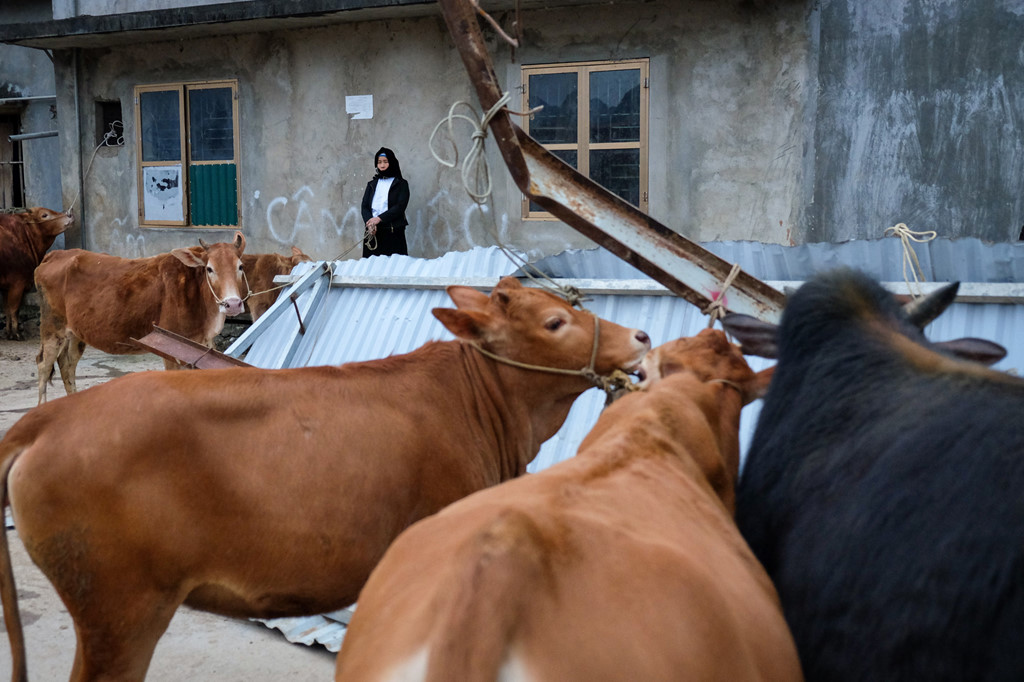 Chị Và Là Dia cùng em gái mang bò từ Khâu Vai (Hà Giang) xuống chợ Mèo Vạc tham gia phiên chợ. Để tới đây, hai người phụ nữ đã phải vượt qua một quãng đường núi khá dài.