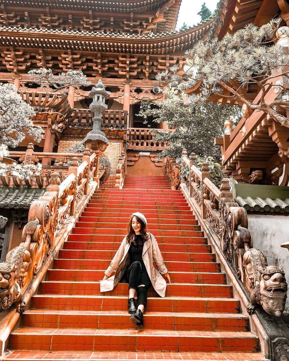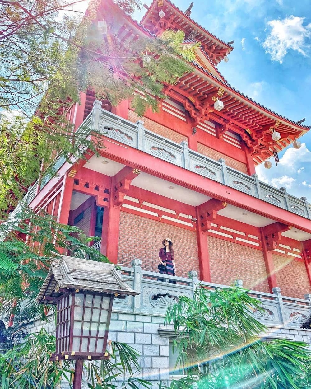 Chùa được xây dựng theo lối kiến trúc tầng lầu xếp chồng lên nhau, với màu xanh, đỏ nổi bật. Đến đây, du khách sẽ có cảm giác như lạc vào xứ sở phù tang với nhiều góc sống ảo thần thánh, tuyệt đẹp. Ảnh: @anhthuphamv, @ttinhh_,.