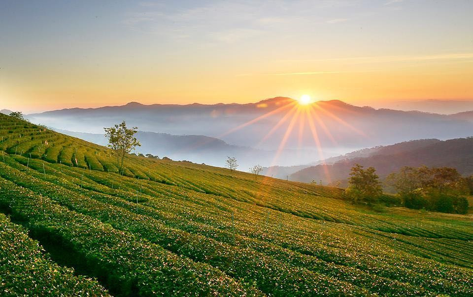 Hướng đi Trại Mát - Cầu Đất: Từ vòng xoay chợ qua cầu, bạn rẽ trái theo đường Trần Quốc Toản - Hồ Tùng Mậu - Trần Hưng Đạo - Hùng Vương - Tự Phước là hướng đi Trại Mát - Cầu Đất, dọc theo quốc lộ 20. Trên cung đường này, bạn có thể tiện đường ghé thăm bảo tàng Lâm Đồng, dinh Bảo Đại 1, chùa Linh Phước, tức "chùa ve chai", đồi chè Cầu Đất... Ảnh: @vantuan_bui, @96x20.2, @dalatlife, @maybrvt.