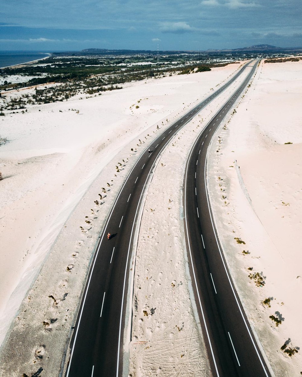 Đi trên cung đường được mệnh danh là đẹp nhất TP. Phan Thiết, bạn sẽ thấy làng chài Mũi Né từ trên cao, khu du lịch Đồi Cát Bay nổi tiếng và cả vịnh Hòn Rơm xinh đẹp không thể nào rời mắt. Đường rộng, dễ chạy và vắng xe ô tô. Có thể nói, đây là cung đường mà bạn nhất định phải đặt chân đến ít nhất một lần trong đời ở Việt Nam.