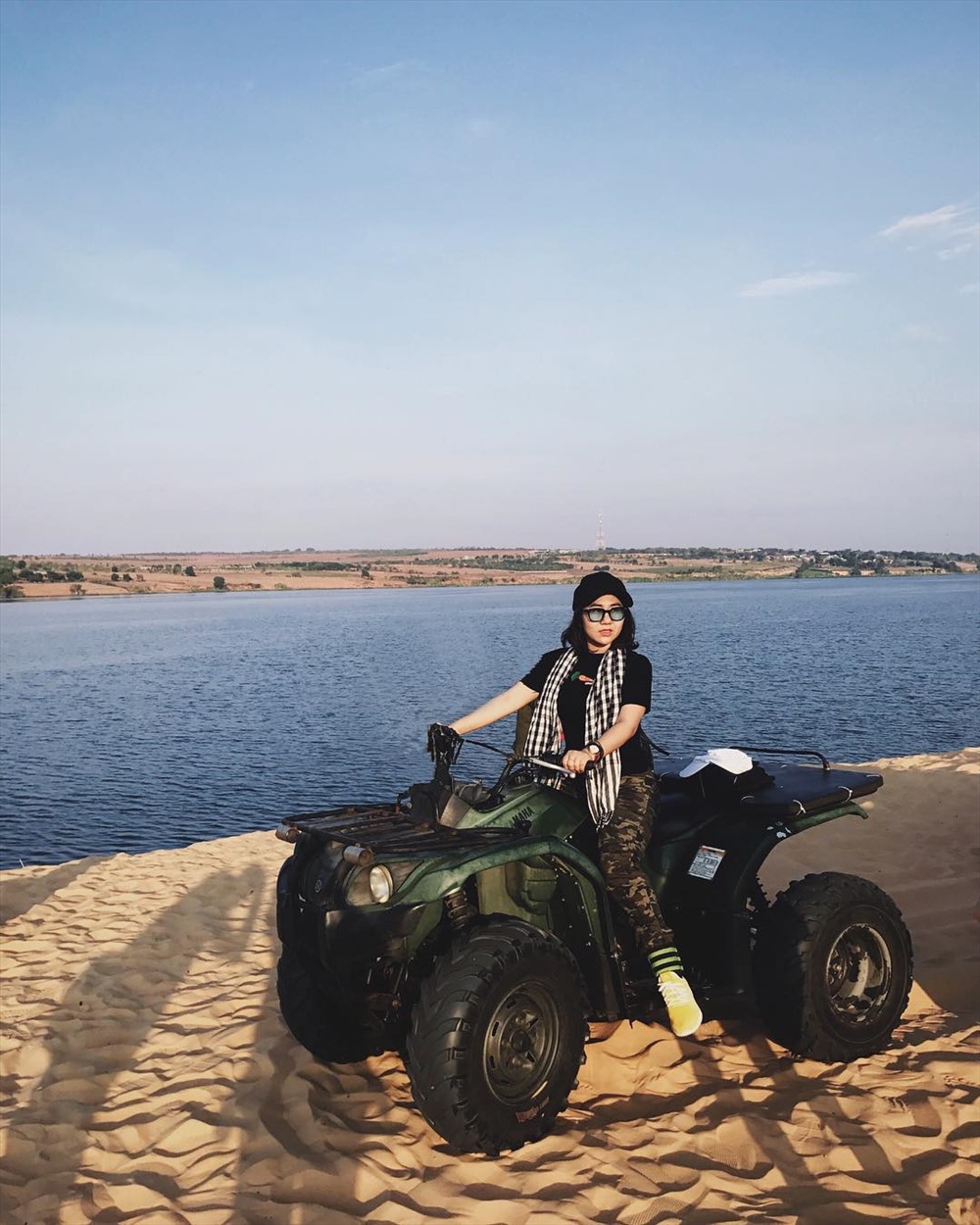 Tại khu du lịch Bàu Trắng, khách có thể thuê xe địa hình chinh phục những đồi cát. Tại đây sắp sẵn một hàng xe mô-tô nhiều màu sắc khác nhau, bạn chỉ cần đánh tiếng với bà chủ quán duy nhất tại đây là có thể rồ ga, phóng nhanh trên những triền cát, cảm nhận hơi nóng của cát, của mặt trời phả vào mặt, cảm nhận những cú chao nghiêng của xe khi ôm theo triền uốn lượn của cát.