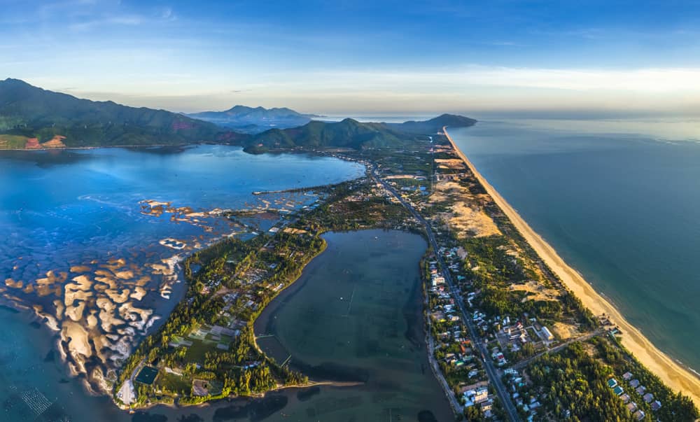 Thật không sai khi Lăng Cô được bình chọn là một trong những vịnh biển đẹp của thế giới. Lăng Cô thuộc huyện Phú Lộc, Thừa Thiên Huế, nằm ngay dưới chân con đèo Hải Vân huyền thoại. Nơi đây có bờ biển thoai thoải, cát trắng rất mịn mà khi bốc lên bạn sẽ thấy như nhúm bột xay đã nhuyễn. Ngoài ra làn nước xung quanh xanh ngắt, trải dài trên bờ cong đẹp nhất miền Trung.