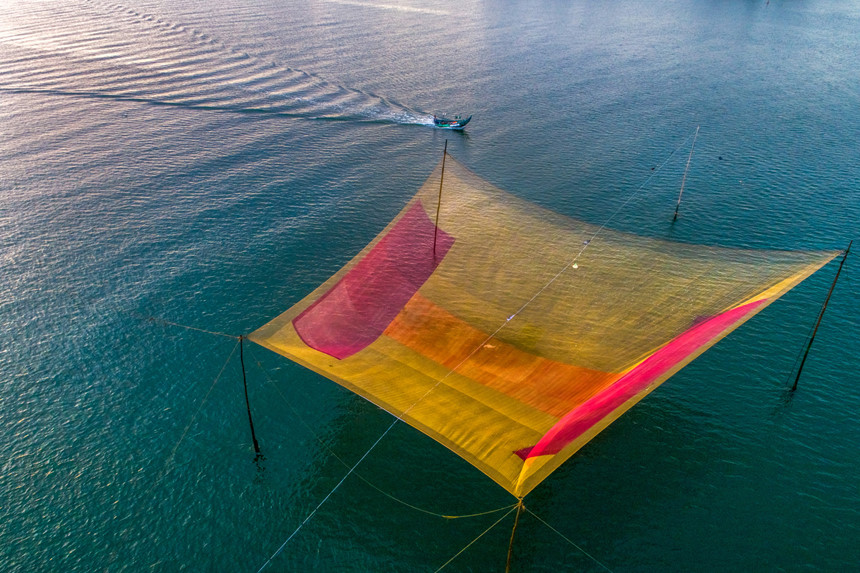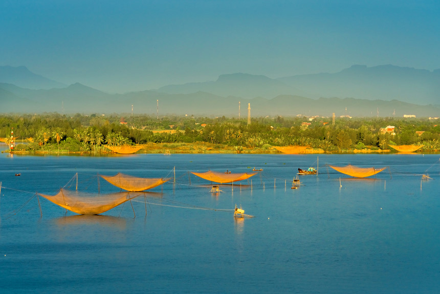 Nơi đây có lòng sông rộng, nhiều bãi cát bồi, nước lợ nên có nhiều loại tôm, cua, cá… tìm về trú ngụ. Có lẽ vì thế mà từ lâu cư dân vùng Cửa Đại đã quen lấy nghề đánh bắt thủy hải sản để làm kế mưu sinh. Cư dân vùng Cửa Đại có nhiều lối đánh bắt cá tôm nhưng độc đáo nhất có lẽ vẫn là lối kéo vó quay, tiếng địa phương gọi là "rớ chồ". Nghề này không biết có từ bao giờ nhưng hiện nay ở khu vực Cửa Đại có tới hàng trăm chiếc rớ chồ được dựng lên vừa để kiếm cá tôm, vừa tạo nên vẻ đẹp độc đáo cho vùng cửa biển xứ miền Trung.