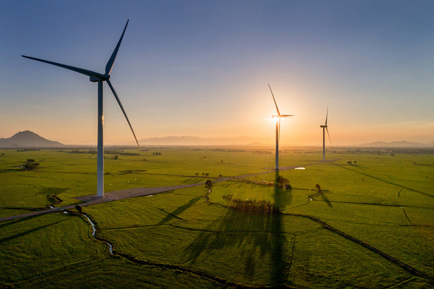 Trên cánh đồng lộng gió, vòng quay đều đều của những cánh quạt trắng muốt nổi bật. Những trụ phong điện giống như những cối xay gió khổng lồ sải cánh vô cùng ấn tượng. Sắc xanh của cỏ cộng hưởng với màu xanh biêng biếc của bầu trời và sắc trắng của những cánh quạt gió tạo nên một khung cảnh thật sinh động.