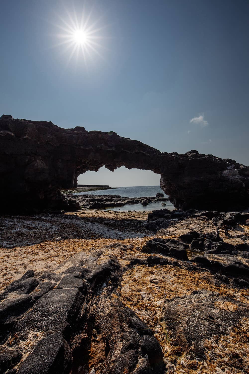 Cổng Tò Vò được hình thành từ nham thạch núi lửa, là trầm tích của hàng triệu năm núi lửa hoạt động tại đây. Quanh cổng Tò Vò là những bãi đá nham thạch đen bóng, hình thù kỳ lạ nhấp nhô trên làn nước trong veo của đảo Lớn. Địa điểm này là nơi được nhiều bạn trẻ đến check-in, các cặp đôi chụp ảnh cưới.