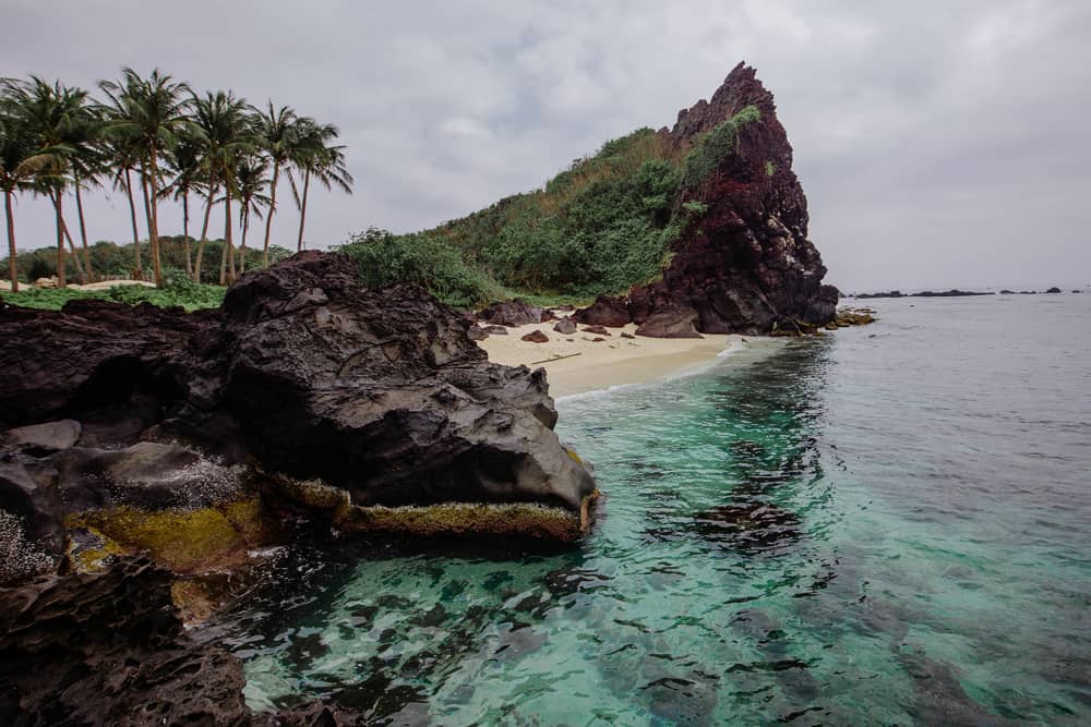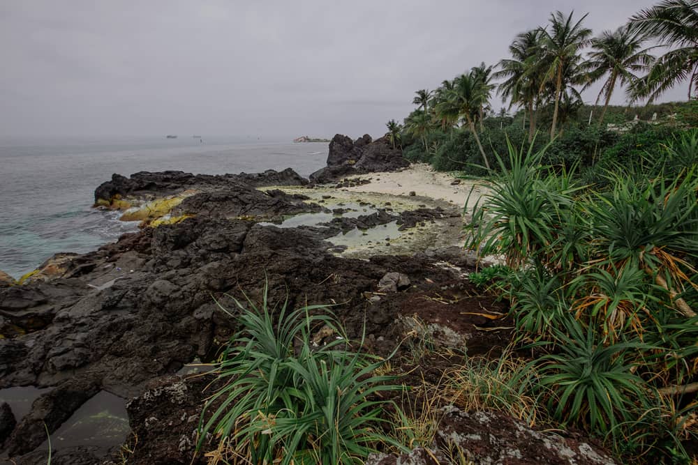 Quanh đảo Bé được trồng nhiều dừa, loại cây đặc trưng của miền biển. Trên bãi biển xanh trong trải dài, nhấp nhô những vách đá trầm tích núi lửa với hình dáng lạ kỳ.