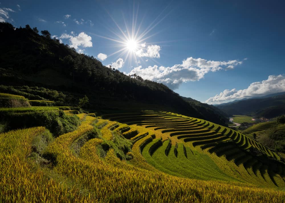 Nằm cách Hà Nội khoảng 300 km, ruộng bậc thang Mù Cang Chải với vẻ đẹp hoang sơ, bình dị nhưng rất hùng vĩ, mộng mơ chính là “nàng thơ” của biết bao nhiếp ảnh gia.