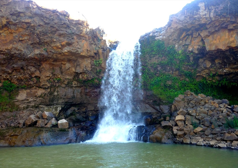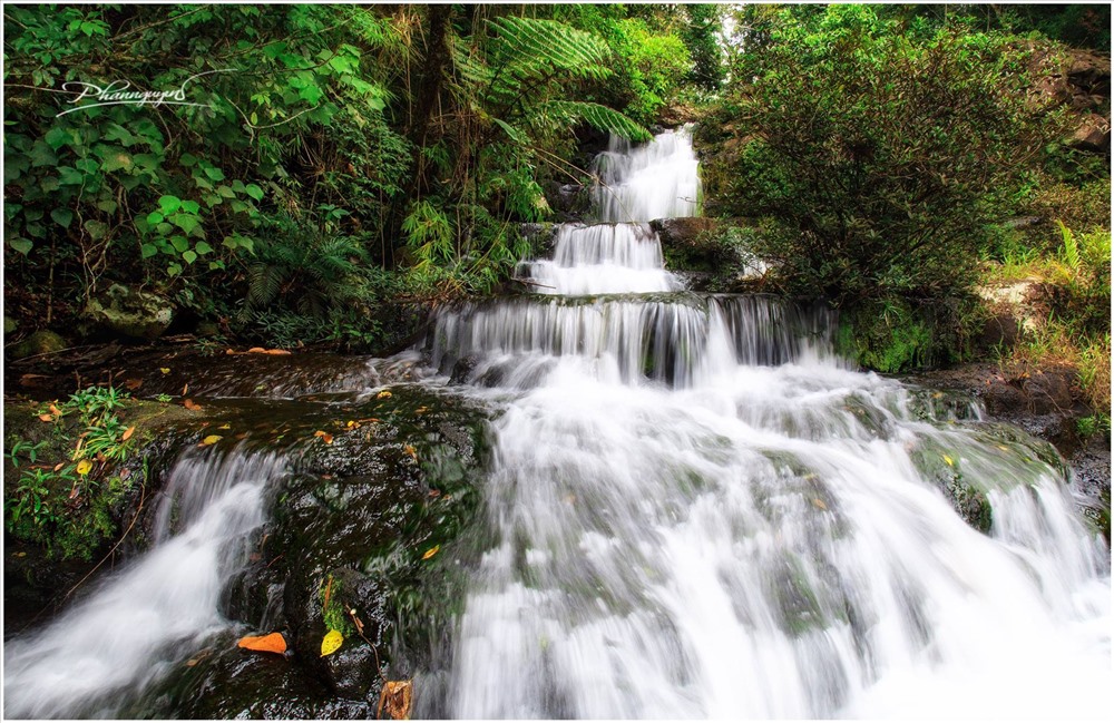 Tên gọi là cách mà những người từng ghé qua đây đặt cho dòng thác này sau khi nhìn ngắm vẻ uốn lượn qua chín tầng đá của nó. Không đổ xuống từ một vách đá chọc trời, thác Chín tầng trải dài qua những vách đá gồ ghề, mỗi tầng cao từ 5-10m, riêng tầng cuối cùng cao 15m. Thác nằm sâu trong núi nên hơi khó tìm đường, thuộc địa phận của xã Iasao, huyện Iagrai, cách trung tâm TP.Pleiku 30km. Ảnh: gialai.gov