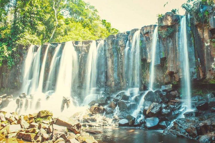 Thác Xung Khoeng thuộc địa phận xã Ia Me, huyện Chư Prông, tỉnh Gia Lai. Hai bên bờ của thác Xung Khoeng xanh một màu u tịch của cây cỏ mọc um tùm. Cách cảm thác tốt nhất là ngồi trên những tảng đá, cảm nhận độ mềm mịn, cái ướt nhẹ của lớp riêu, chìm vào cái bao la của bầu trời, mát lạnh của hơi nước được ủ lâu ngày dưới những tán cây lớn. Ảnh: ST