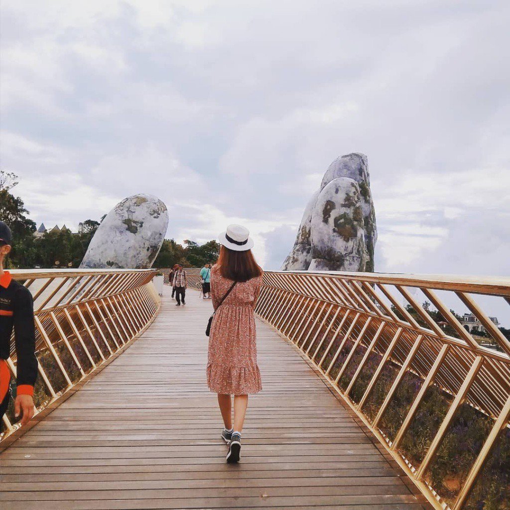 Cầu Vàng tọa lạc ở vườn Thiên Thai của Bà Nà Hills, nằm ở độ cao 1414m so với mực nước biển, cầu Vàng được thiết kế vô cùng ấn tượng, vẽ nên một cung đường đầy mê hoặc giữa lưng chừng trời dài gần 150m. Cầu nổi tiếng với hai bàn tay khổng lồ nâng đỡ cây cầu uốn quanh giống như người thiếu nữ đang nâng dải lụa vắt ngang qua rừng núi. Đứng giữa biển mây và phóng tầm mắt ra xa, bạn sẽ bắt gặp những cánh rừng nguyên sinh trải dài tít tắp và xa hơn nữa là toàn cảnh thành phố Đà Nẵng. Nhờ vậy Cầu Vàng trở thành địa điểm check-in mới cực thu hút bởi trải nghiệm dạo bước trên mây quá đỗi tuyệt vời. Sức nóng của Cầu Vàng không chỉ dừng lại trong nước mà còn vượt ra quốc tế khi trang Instagram @streetartglobe nổi tiếng với những bài chia sẻ về văn hóa, nghệ thuật trên khắp thế giới đã đăng tải 1 video về Cầu Vàng ở Đà Nẵng và nhận được vô số lượt xem và yêu thích.