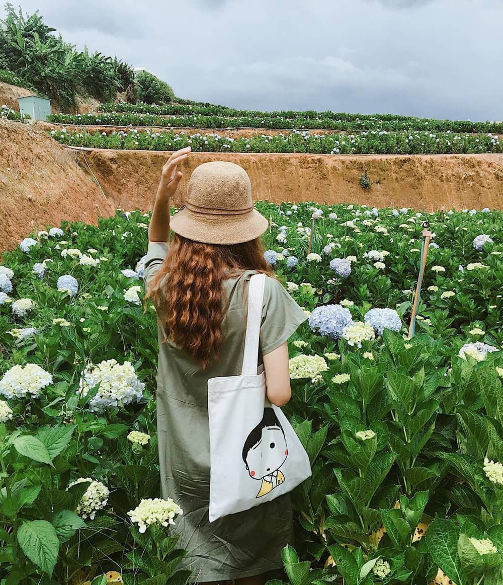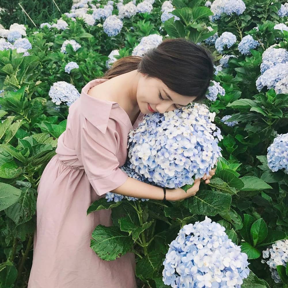 Cánh đồng hoa cẩm tú cầu: Không hổ danh là thành phố ngàn hoa, những loài hoa ở Đà Lạt cũng làm nức lòng giới trẻ. Cánh đồng hoa cẩm tú cầu rộng hơn 2 ha nằm ở huyện Lạc Dương, cạnh tỉnh lộ 723 cũng là điểm đến thu hút những ai ghé tới thành phố này. Những khóm hoa cẩm tú cầu xanh ngập tràn trải dài dưới tán rừng thông xanh mát tạo khung cảnh nên thơ như trong truyện cổ tích. Ảnh: @phuonggbong, @dhngocc.