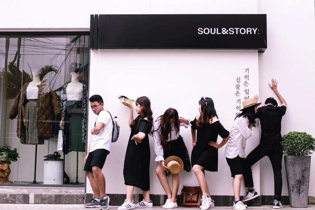 Bức tường Soul & Story: Tương tự Cối Xay Gió, bức tường trắng của tiệm quần áo Soul & Story trên đường Hải Thượng cũng được giới trẻ rất ưa chuộng làm điểm check-in. Hai màu trắng đen đơn giản cùng dòng chữ tiếng Hàn Quốc đã trở thành điểm nhấn đắt giá cho bức ảnh của mỗi người. Ảnh: @hothuctrinh, @kieuhoa191.