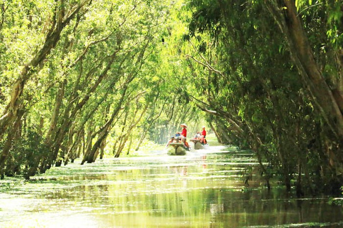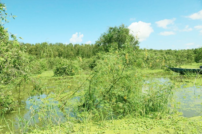 Đến đây, du khách sẽ được di chuyển bằng xuồng máy, lướt trên mặt bèo, tận hưởng cảnh thiên nhiên hoang sơ bao la, với nhiều loại động, thực vật hoang dã (11 loài thú, 70 loài chim, 22 loài bò sát, 23 loài cá và có đến 140 loài thực vật).