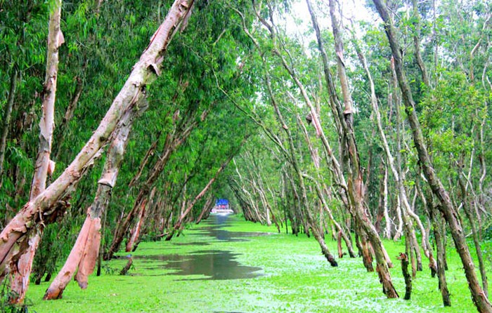 Hàng cây tràm trong khu rừng ngập nước tiêu biểu cho vùng miền Tây.