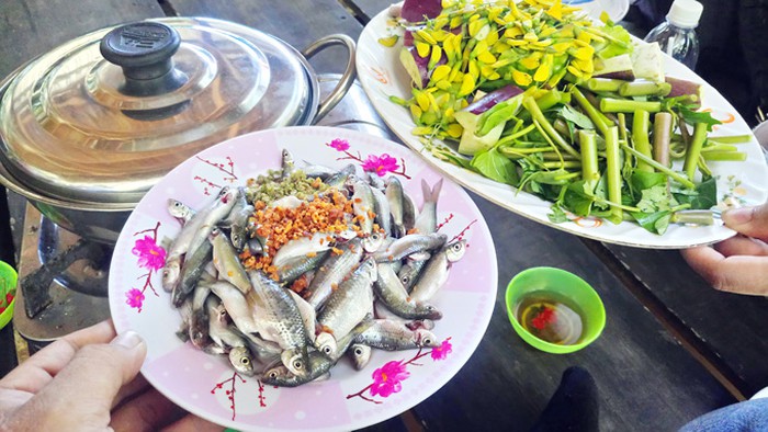 Vào mùa nước nổi, bông điên điểm, cá linh xuất hiện nhiều.