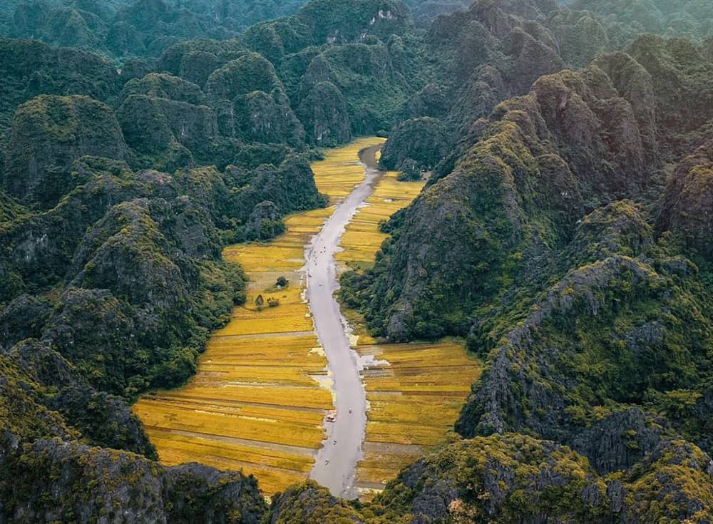 Tam Cốc "vàng óng" nhìn từ đỉnh Hang Múa. Ảnh: @letuananh.