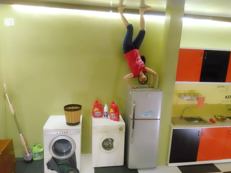 Tới đây, bạn sẽ phải thốt lên ngạc nhiên khi dưới chân mình không còn là sàn nhà nữa mà là mái nhà, những đồ vật thì lơ lửng phía trên. Sự đảo lộn này khiến các bạn trẻ cũng như du khách thích thú vì có cảm giác mình đang lạc vào một thế giới khác, một thế giới không trọng lực.