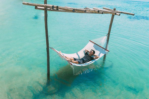 Nằm trên võng đu đưa tận hưởng gió biển mơn man. Ảnh: Bi Nguyễn.