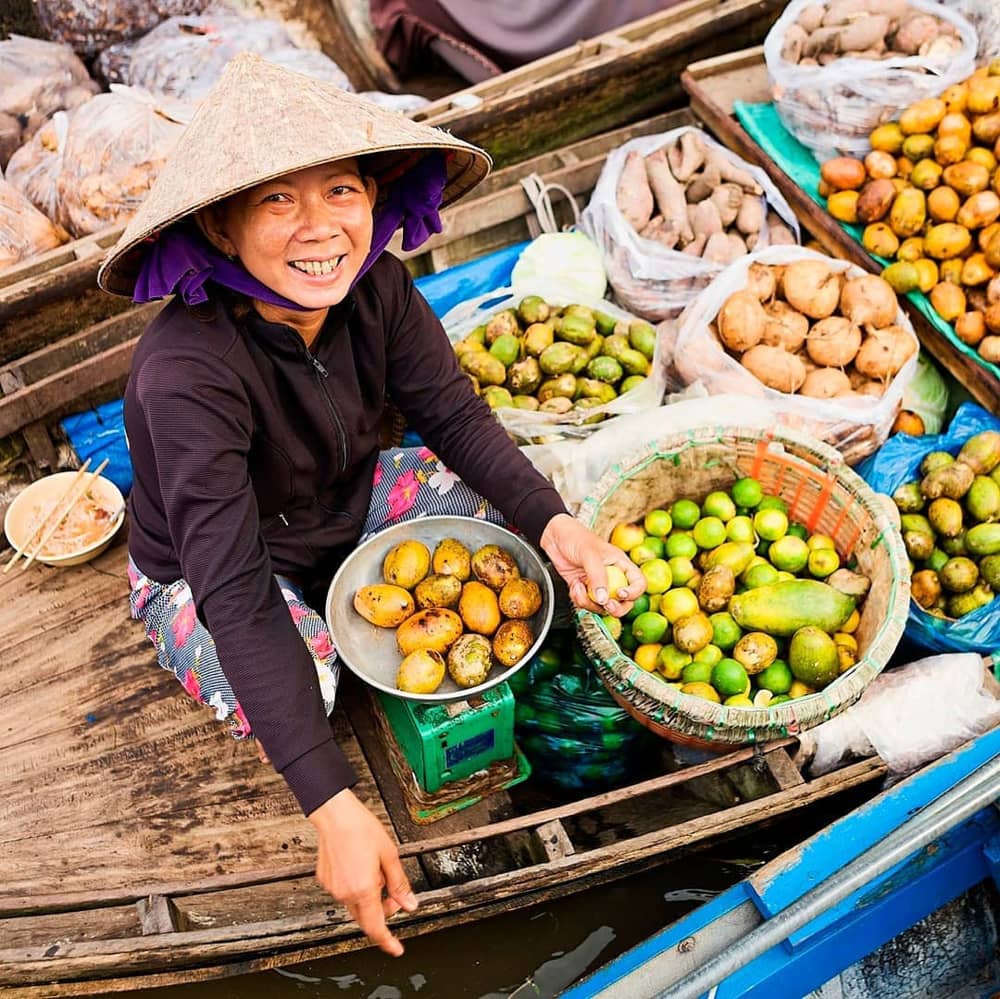 Chợ nổi Cái Răng - Cần Thơ: Khu chợ miền Tây nổi tiếng này là chợ nổi chuyên trao đổi, mua bán nông sản, các loại trái cây, hàng hóa, thực phẩm trên sông và là điểm tham quan đặc sắc của quận Cái Răng, thành phố Cần Thơ. Nét độc đáo nhất của khu chợ chính là quang cảnh buôn bán tấp nập bình dị của người dân cũng như các loại trái cây đủ màu, đặc sản của vùng đồng bằng sông Cửu Long. Ảnh: Flickr.