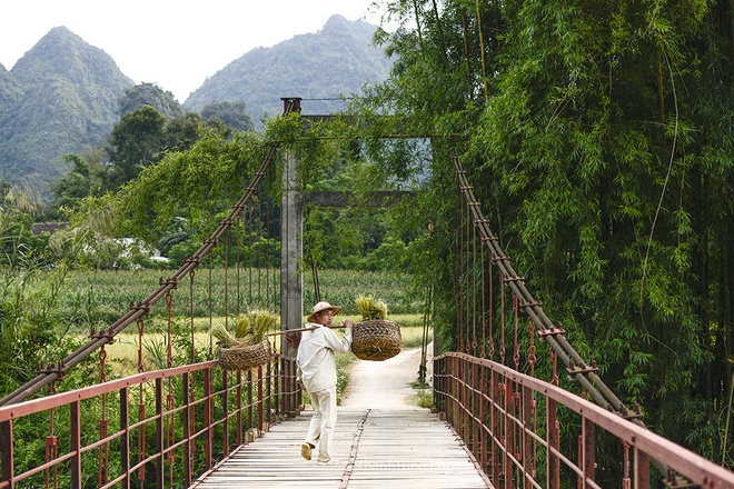 Những chiếc cầu tre xinh xinh là nơi bà con hàng ngày gánh lúa về.