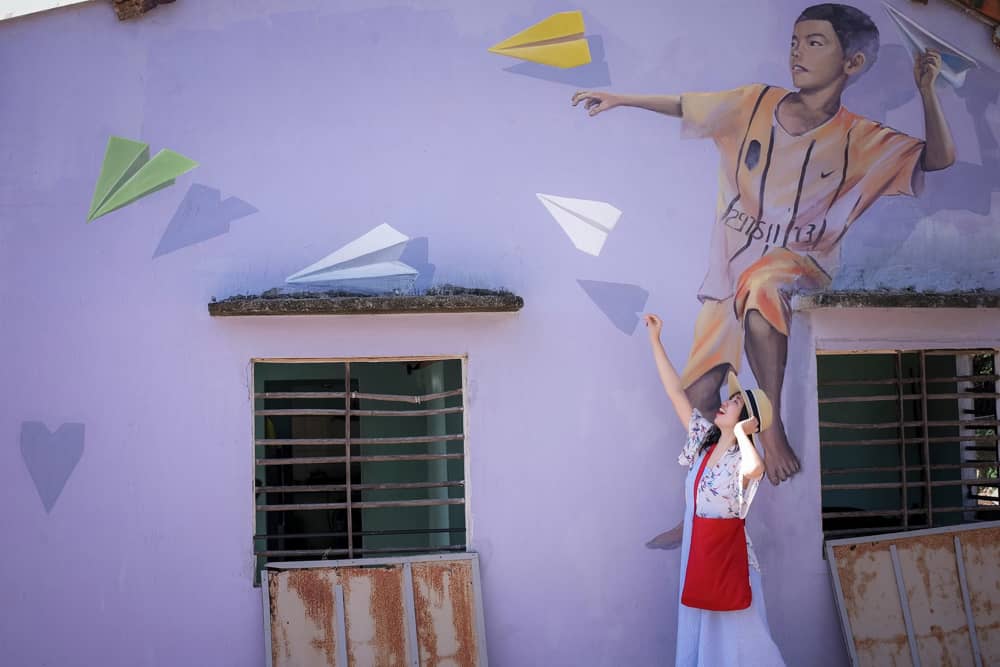 Nằm ở thành phố Tam Kỳ, tỉnh Quảng Nam, làng bích họa Tam Thanh là địa chỉ thích hợp cho những ai yêu nhiếp ảnh hay đơn giản là có sở thích chụp hình, check-in. Chỉ với hơn 1 giờ bay cùng Vietjet từ Hà Nội và TP.HCM đến Chu Lai (Quảng Nam), bạn có thể đổi gió check-in dễ dàng tại làng bích họa Tam Thanh. Ảnh: Phạm Mai Linh.