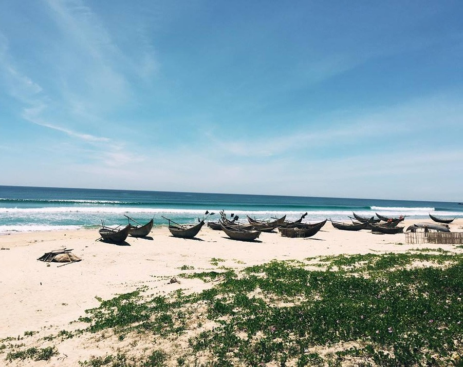 Bãi biển ngay sát làng bích họa hoang sơ và thơ mộng với cát trắng, nước trong veo và gió thổi mát lạnh. Thật lãng phí nếu đến Tam Thanh mà bạn không dành thời gian dạo chơi và ghi lại từng thước ảnh trong khung cảnh đẹp như tranh của bãi biển này. Ảnh: Sử Phước, Vntrip.