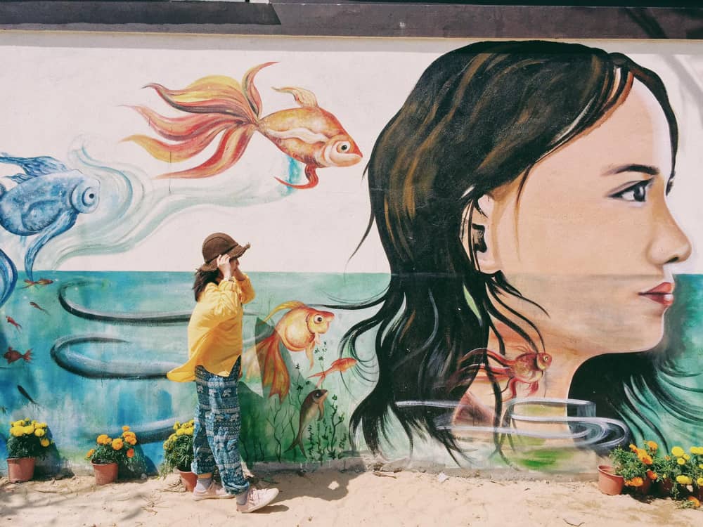 Nhờ đó, ngôi làng chài nghèo, còn nhiều khó khăn bỗng vụt trở thành địa điểm du lịch mới lạ và rất hot trong năm 2016. Các bạn trẻ nô nức kéo nhau đến khám phá những bức bích họa rực rỡ sắc màu. Qua thời gian, dù đã hạ nhiệt ít nhiều, làng bích họa Tam Thanh vẫn là cái tên quen thuộc và địa điểm sống ảo yêu thích của nhiều tín đồ mê hội hoạ. Ảnh: Be Tran.