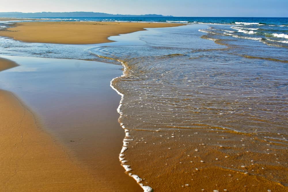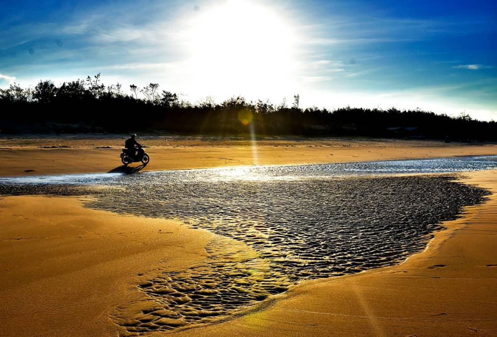 Thủy triều rút ra xa để lại dấu vết hệt như gợn sóng uốn lượn trên bãi cát vàng ở xã Bình Phú, huyện Bình Sơn.