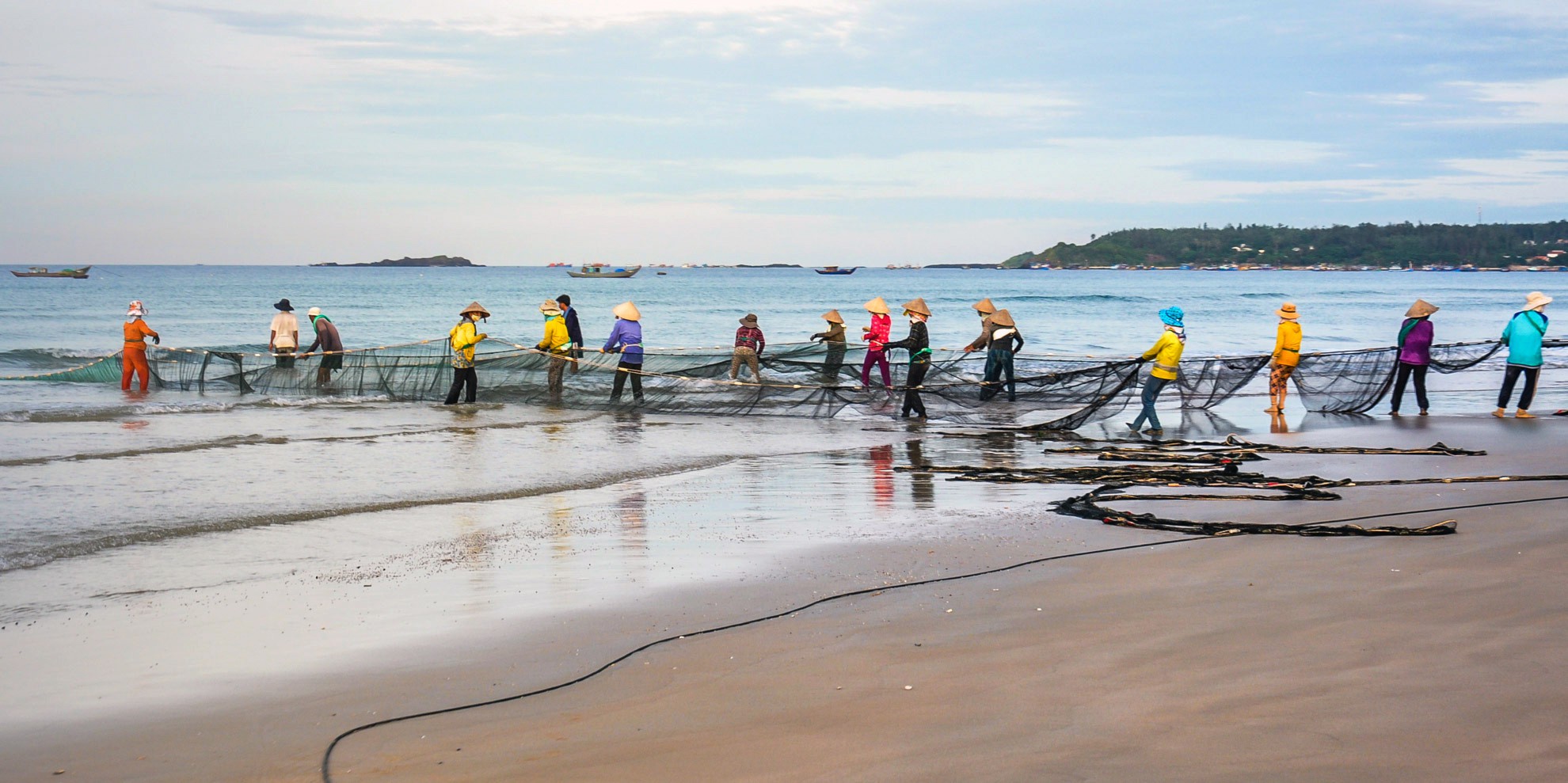 Đến tham quan vùng biển Bình Châu, du khách có thể trải nghiệm kéo lưới vây cá cùng ngư dân nơi đây. Theo các chuyên gia, vùng biển Bình Châu tích hợp nhiều giá trị di sản. Khu vực này không chỉ có di sản biển phong phú được ví là "nghĩa địa tàu cổ đắm", với nhiều niên đại khác nhau, mà còn có di sản địa chất về trầm tích núi lửa ở vùng biển gần bờ độc đáo, hiếm hoi của thế giới.