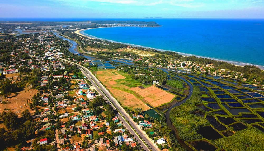 Vùng biển Lệ Thủy, nằm sát bên đô thị Vạn Tường, khu kinh tế Dung Quất. Từ trên cao, du khách có thể phóng tầm mắt thưởng ngoạn tàu thuyền, ghe thúng nhấp nhô trên mặt biển như bức tranh thủy mặc...