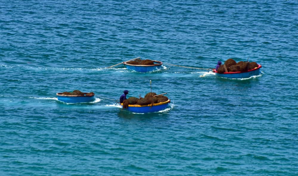... Hay từng đôi ghe thúng vận chuyển rong mơ rẽ sóng trên đường về cập bến ở bãi biển Lệ Thủy (xã Bình Trị, huyện Bình Sơn).
