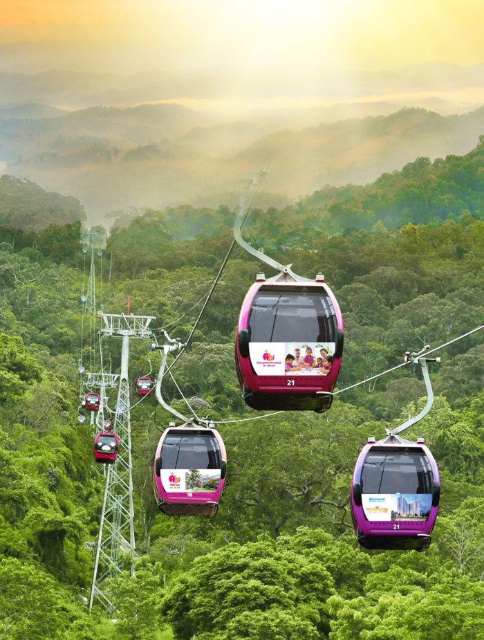 Cáp treo lên đỉnh Tà Cú.Cùng đi dạo với người thân trong khuôn viên TTC World - Tà Cú cũng là một gợi ý không tồi cho các bạn thích khám phá thiên nhiên và trải nghiệm cảm giác yên lành. Nếu bạn muốn thưởng ngoạn ngôi chùa Linh Sơn Trường Thọ hay thử bước vào Hang Tổ - nơi tổ sư Trần Hữu Đức tu tập và trở thành giai thoại thì có thể “bắt” cáp treo đi thẳng một mạch đến nơi.