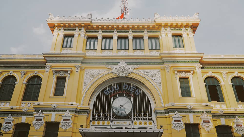 Người Pháp xây dựng Bưu điện trung tâm Sài Gòn trong giai đoạn 1886 - 1891 làm nơi truyền điện tín, thư từ. Công trình tọa lạc tại Công trường Công xã Paris, quận 1 mang phong cách châu Âu kết hợp với nét Á Đông theo bản vẽ của kiến trúc sư Pháp.