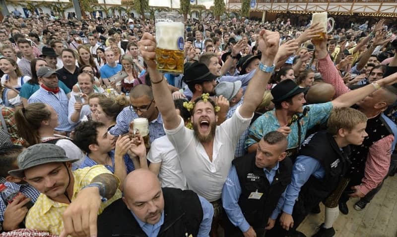 12. Uống bia ở lễ hội Oktoberfest, Đức: Đây là lễ hội bia lớn nhất thế giới, được tổ chức hằng năm ở Munich, Bavaria, Đức. Lễ hội kéo dài 16 ngày từ tháng 9 đến tháng 10. Mỗi năm có khoảng hơn 6 triệu người từ khắp nơi trên thế giới đổ về đây.