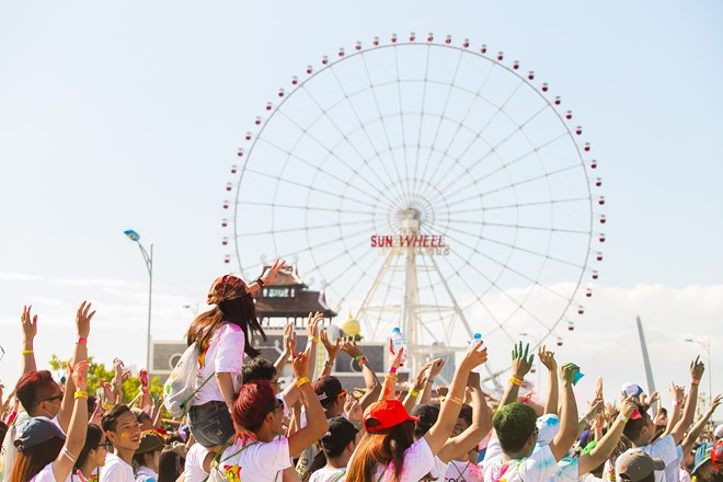 Cổng chào và những ngôi nhà nhỏ được kết bằng rơm óng vàng, thơm mùi đồng quê tại vòng quay Sun Wheel. Bên những đụn rơm, cúc vàng nở rộ cạnh chiếc bàn tre, chén nước chè quê còn đang sóng sánh. Mùa xuân tràn ngập sức sống trên những con đường thấp thoáng bóng mai đào, trong những thuyền hoa, ghế hoa, xe hoa đủ sắc màu khắp công viên.