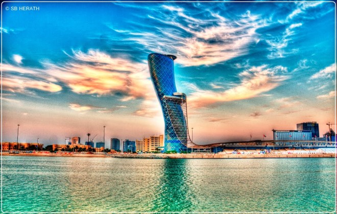 12. Hyatt Capital Gate: Tòa nhà cao 160m, nghiêng một góc 18 độ (gấp 4 lần tháp nghiêng Pisa, Italia) được sách Kỷ lục Guinness công nhận là "Tòa tháp nhân tạo nghiêng nhiều nhất thế giới".