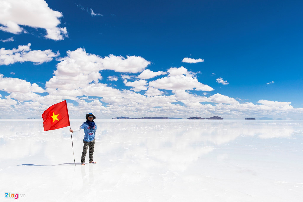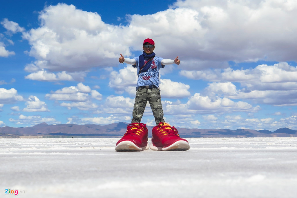 Hiện nay, ngoài thu hút khách du lịch, Uyuni cũng là mỏ vàng cho ngành khai thác khoáng sản của Bolivia, nơi lưu trữ một nửa lượng li-ti của thế giới mà được dùng làm pin năng lượng cao. Tôi thật sự thích thú và cảm thấy bé nhỏ giữa cánh đồng muối chạy dài vô tận. Bầu trời và mặt đất dường như gần nhau hơn. Mọi người đều phải đeo kính râm để bảo vệ mắt.